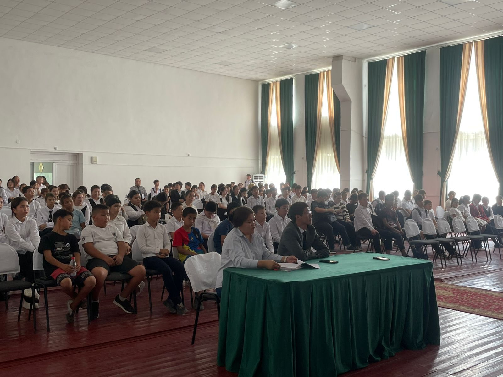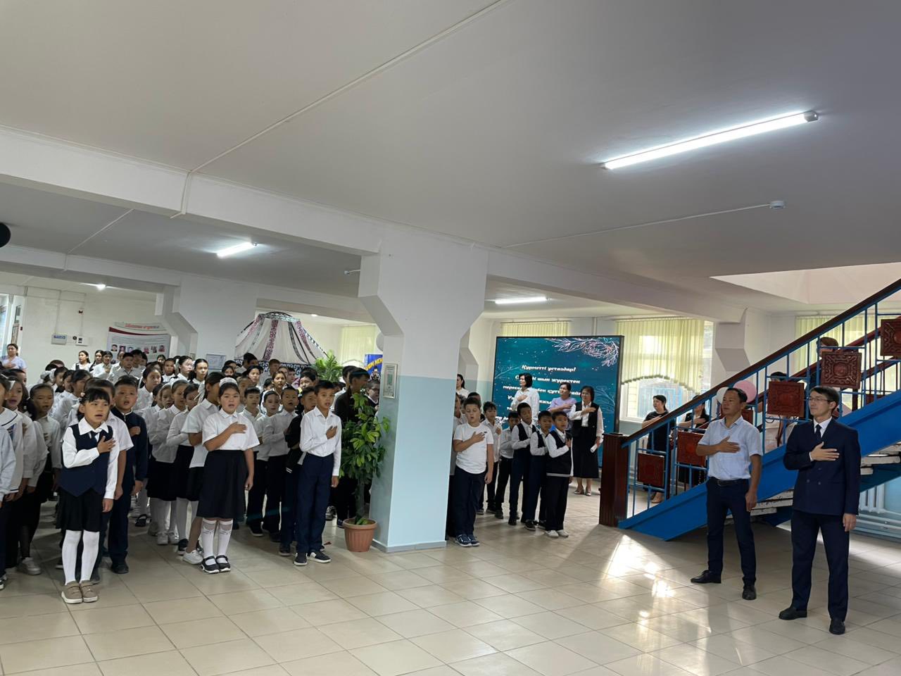 Дүйсенбіде, мектебімізде Қазақстан Республикасының Мемлекеттік Әнұраны орындалды.