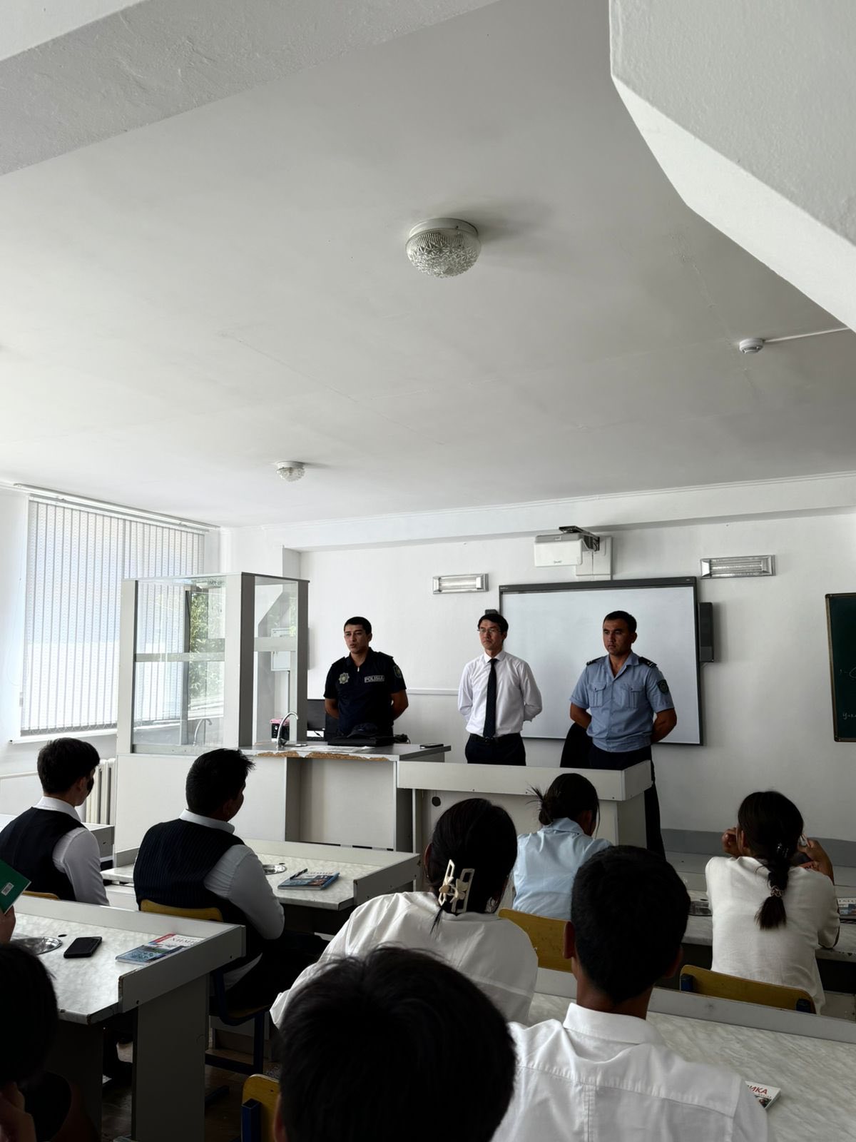 Жиналысты мектеп директорының ТЖЖО Н.Ділдабек ашып, күн тәртібінде қаралатын мәселе бойынша ҚР Әкімшілік құқық бұзушылықтар кодексі мен қылмыстық кодексінің баптарына сәйкес оқушылармен кездесу өтті. Шардара АПБ-нің ЖПҚБ-нің учаскелік полиция инспекторы полиция аға лейтенанты Тасымбек Шоқан Оразбекұлы және ЖПҚБ ЮПТ полиция лейтенанты Тұрлыбеков Нұрдәулет. Аталмыш жиналыста келген қонақтарымыз жасөспірімдердің құқықтық жауапкершілігін түсіндіріп, нақты мысалдар келтірді.