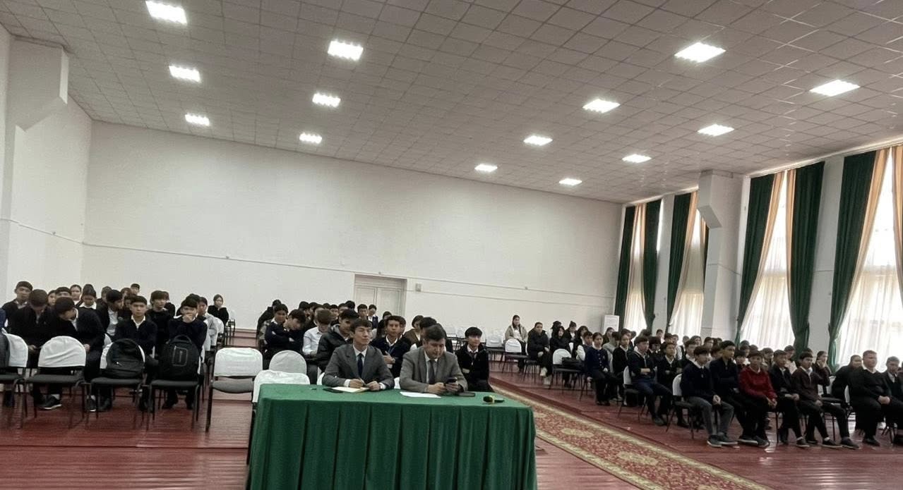 Мектеп директоры Н. Сариев, өзін-өзі басқару ұйымының мүшелері және мектеп президенті Н. Ермекбай қатысып, оқушылармен қауіпсіздік бағытындағы маңызды мәселелерді талқылады.