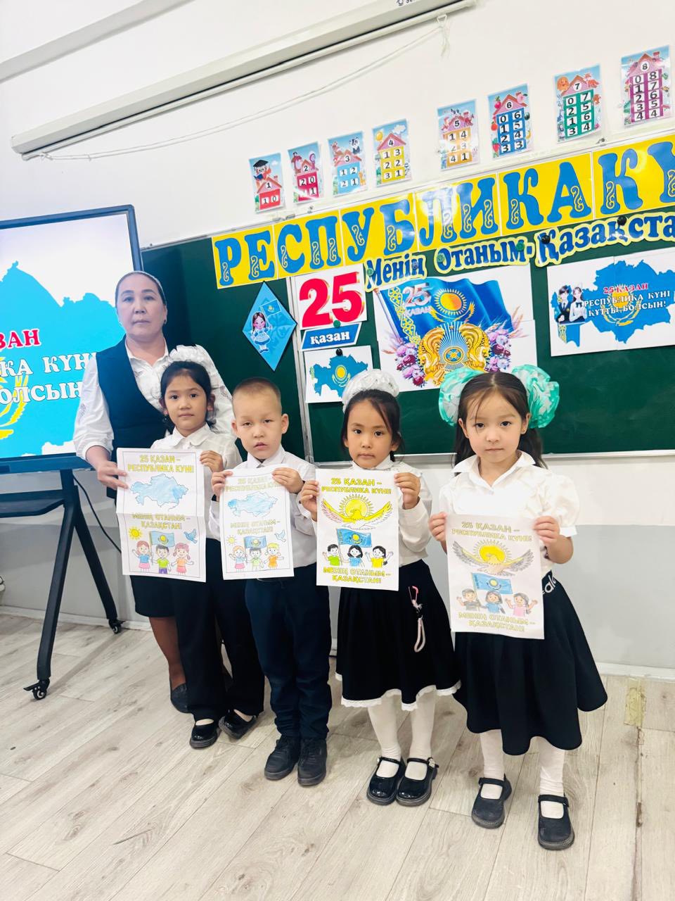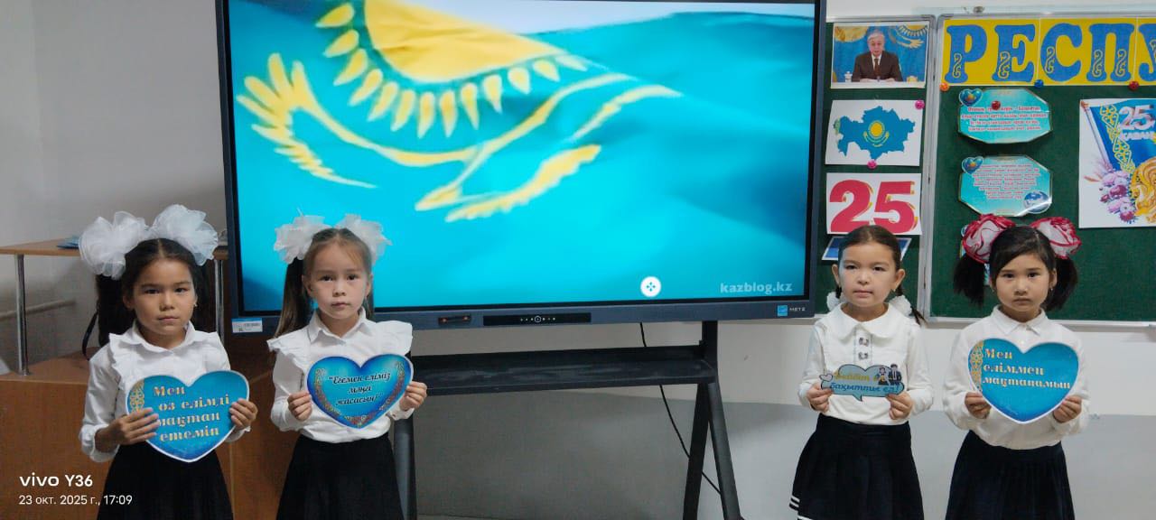 Түркістан облысы, Шардара ауданы, Шардара қаласы аудандық білім бөліміне қарасты Бердібек Соқпақбаев атындағы жалпы білім беретін мектебінің 1 'А' сынып жетекшісі Кудайбергенова Нагима Опахановна ,1'Ә' сынып жетекшісі Ораз Ботакөз Жұмакелдіқызы, 2'Ә' сынып жетекшісі Әзтай Перизат Саттарқызы 23.10.2025ж күні 25 қазан - Республика күніне орай 'Республика менің тірегім' атты тәрбие сағаттарын өтті.