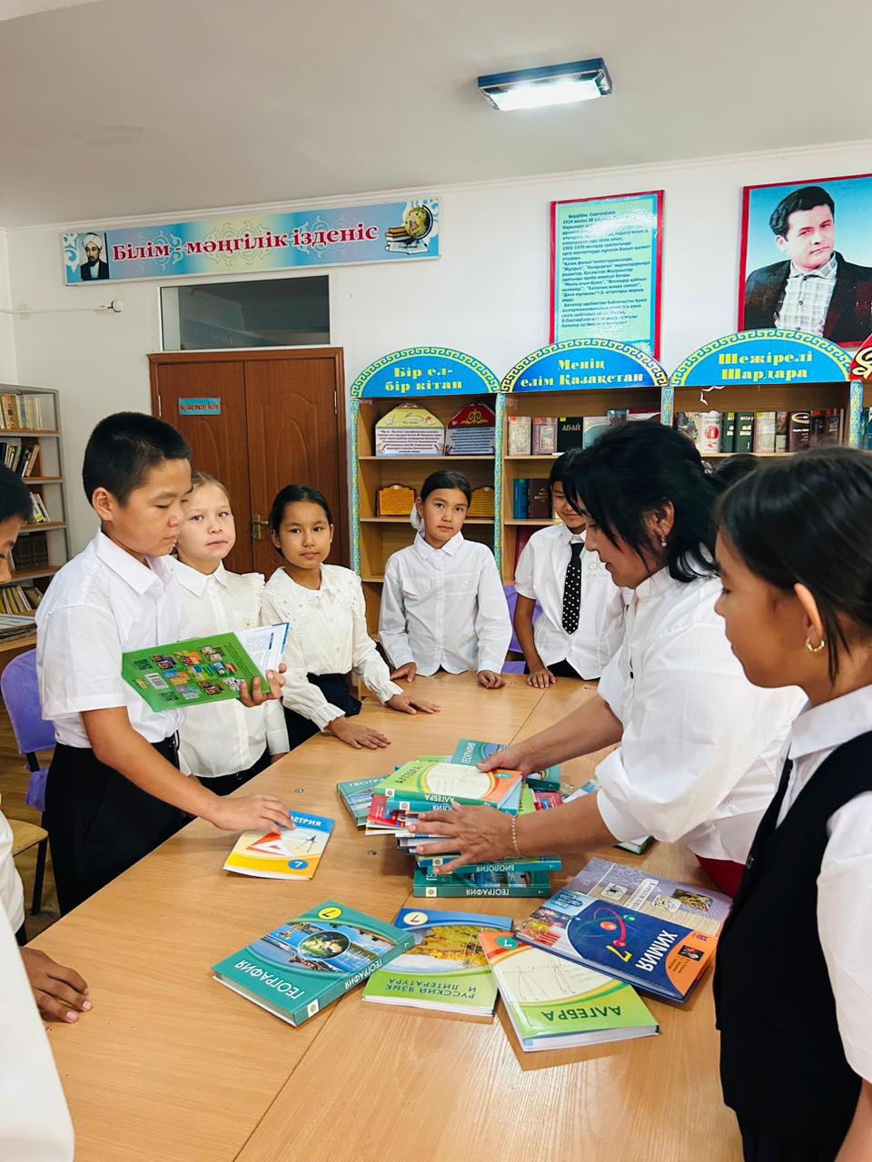 Түркістан облысы ,Шардара ауданының білім бөліміне қарасты Б.Соқпақбаев атындағы жалпы білім беретін мектебінің кітапханасында 2025-2026ж оқу жылының басталуына байланысты оқушылардың оқуға қызығушылығын арттыру мақсатында "Біз кітаппен біргеміз "атты жаңадан түскен оқулықтармен 7 сынып оқушыларына таныстыру жұмыстары жүргізілді.