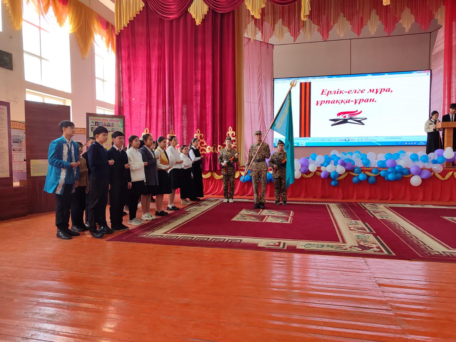 Іс - шара барысында үздік оқушыларымызды еліміздің нағыз патриоты, еңбекқор білімге құштар, қайсар етіп тәрбиелеуде Бірыңғай «Жас ұлан» балалар мен жасөспірімдер ұйымына қабылдау рәсімі болды. Іс - шара барысында дарынды оқушыларымыз ардагерлерге арнап патриоттық әндер айтып, би билеп жақсы көңіл күй сыйлады.