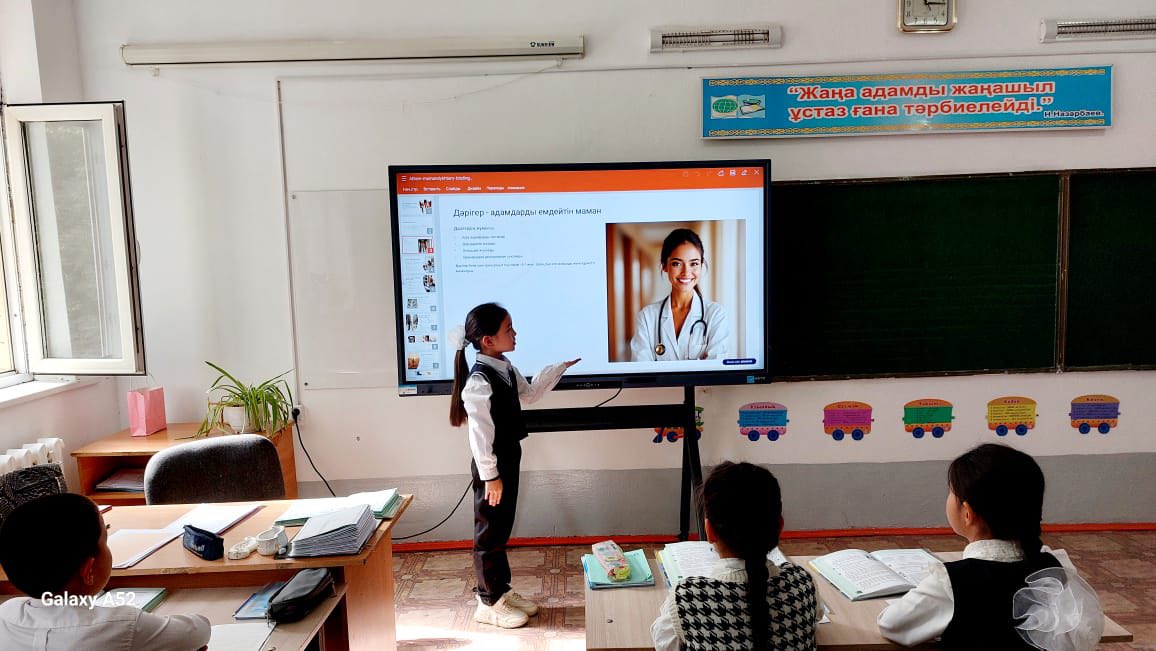Түркістан облысы Шардара аудандық білім бөліміне қарасты Б.Соқпақбаев атындағы жалпы білім беретін мектебінде бейіндік оқыту және кәсіби бағдар беру жұмыс жоспарына сәйкес 4-сынып оқушыларымен «Әлем мамандықтары – біздің болашағымыз» тақырыбында танымдық сынып сағаты өткізілді.