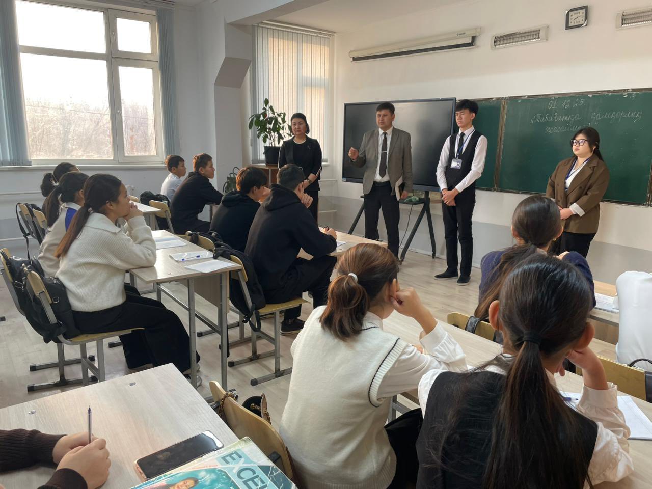 8 -сыныптар аралығында «Табиғатқа қамқорлық жасайық» атты тәрбие сағаты ұйымдастырылып, экологиялық мәдениет, табиғатты қорғау және қауіпсіз табиғи орта қалыптастырудың маңызы айтылды.
