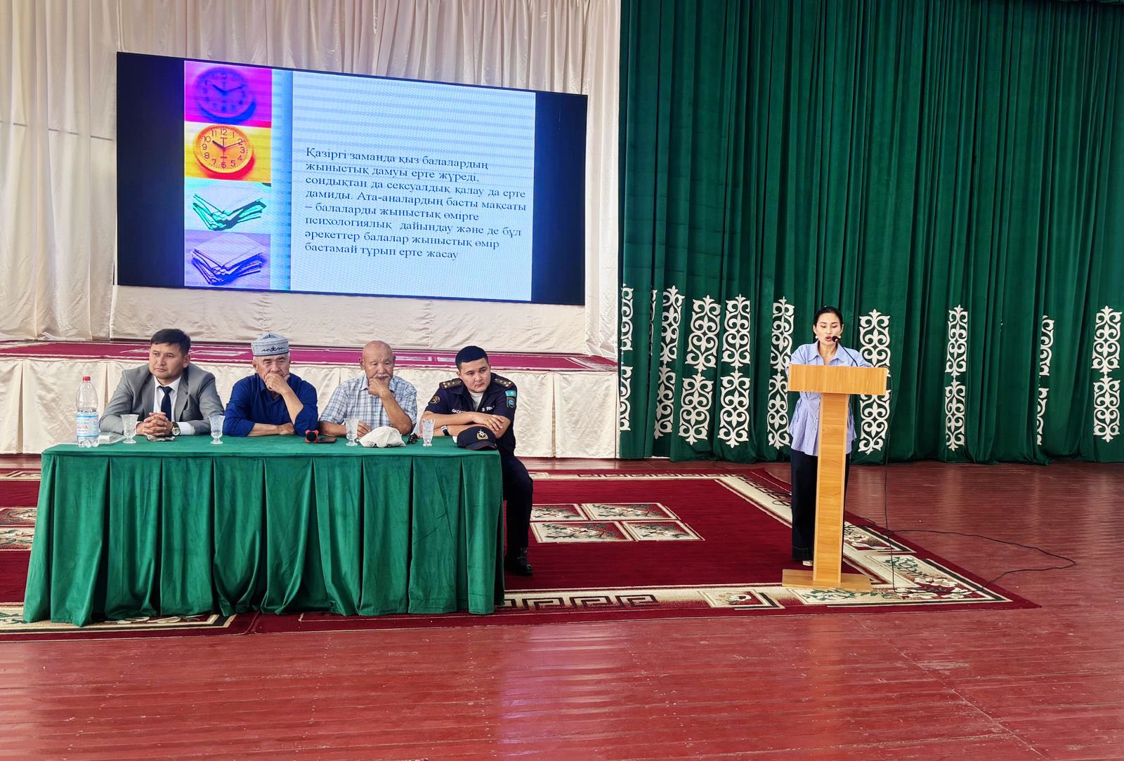 Мұнан соң өз кезегінде мектебіміздің медбикесі А. Рахимова “Жыныстық түсініспеушіліктің алдын алу” тақырыбында баяндама оқып, үйде мейлінше балалармен ашық сөйлесіп, оларға жыныстық тиіспеушілік туралы айтып отырғанның артық етпейтінін жеткізді. Осы тақырыпты тереңінен қозғаған мектебіміздің инспекторы К. Жанықұлов оқушыларымызды барынша ойынқұмарлықтың, темекі әуестігінен алшақ ұстауымыз керек екенін ашып айтты.