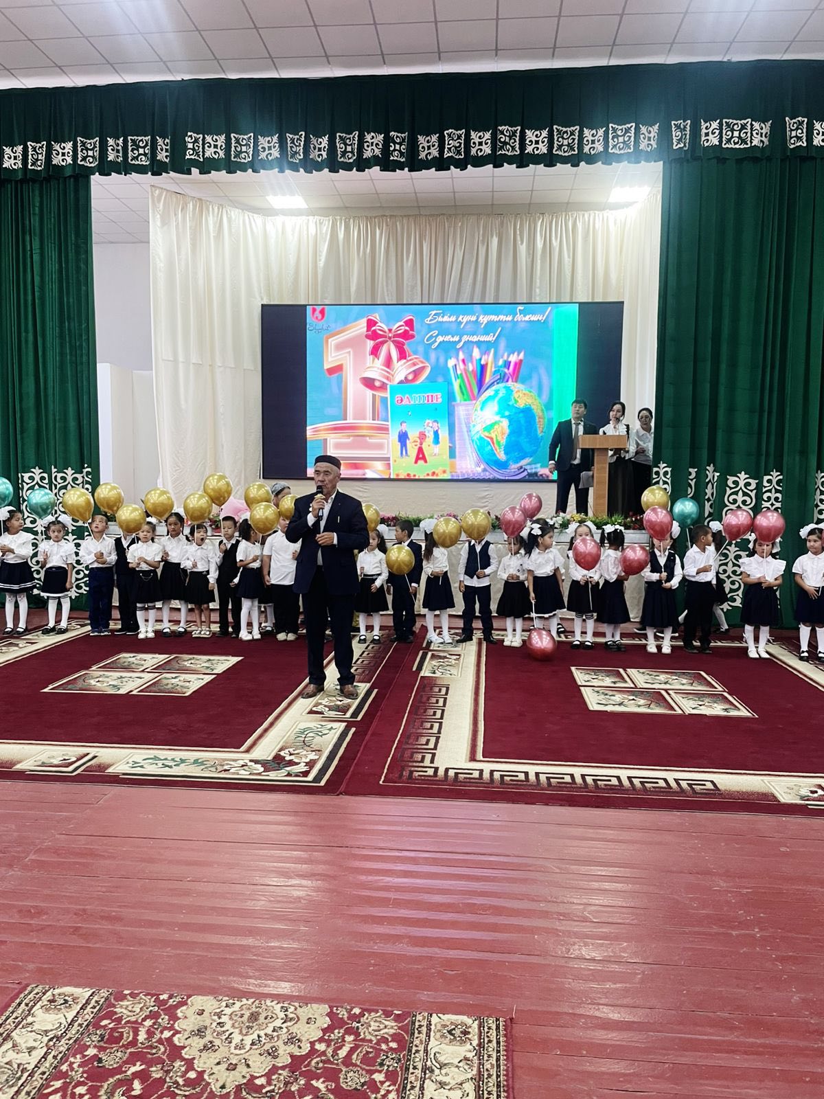Мерекелік іс-шараны мектебіміздің директоры Н.Т.Сариев ашып, өткен оқу жылының жетістіктеріне тоқталып, білім әлеміне қадам басқан 1-сынып оқушыларына сәттілік тіледі, жаңа оқу жылымен ұстаздарды, оқушыларды, ата-аналарды құттықтап, 1-сыныптар үшін дайындаған сыйлықтарын табыстады.