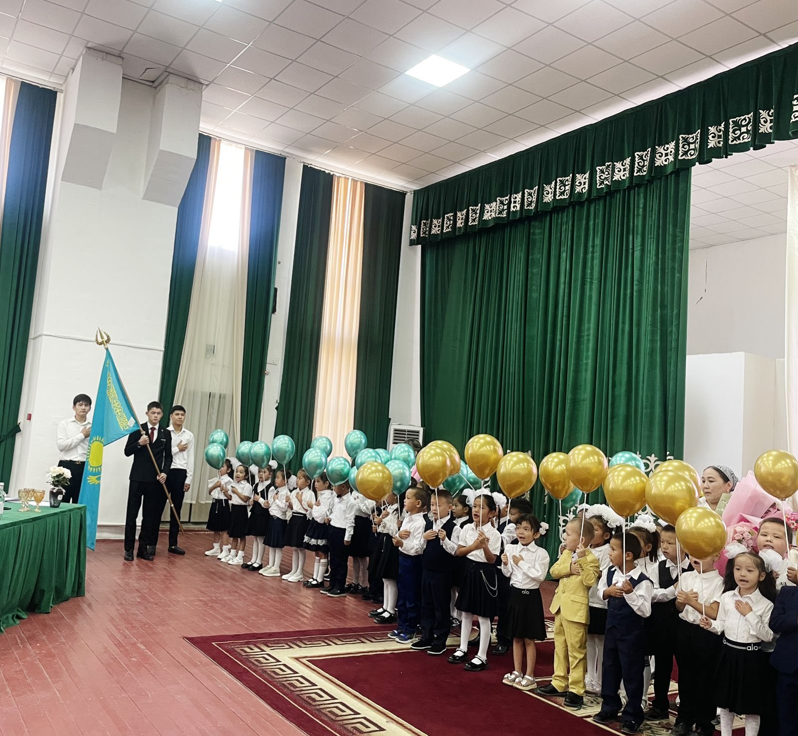 Мектеп табалдырығын алғаш аттап отырған 1-ші сынып оқушылары тақпақтарын айтып, көпшіліктің қошеметіне бөленді. Мектептің өнерпаз оқушылары ән шырқап, музыкалық сәлемін жолдады.