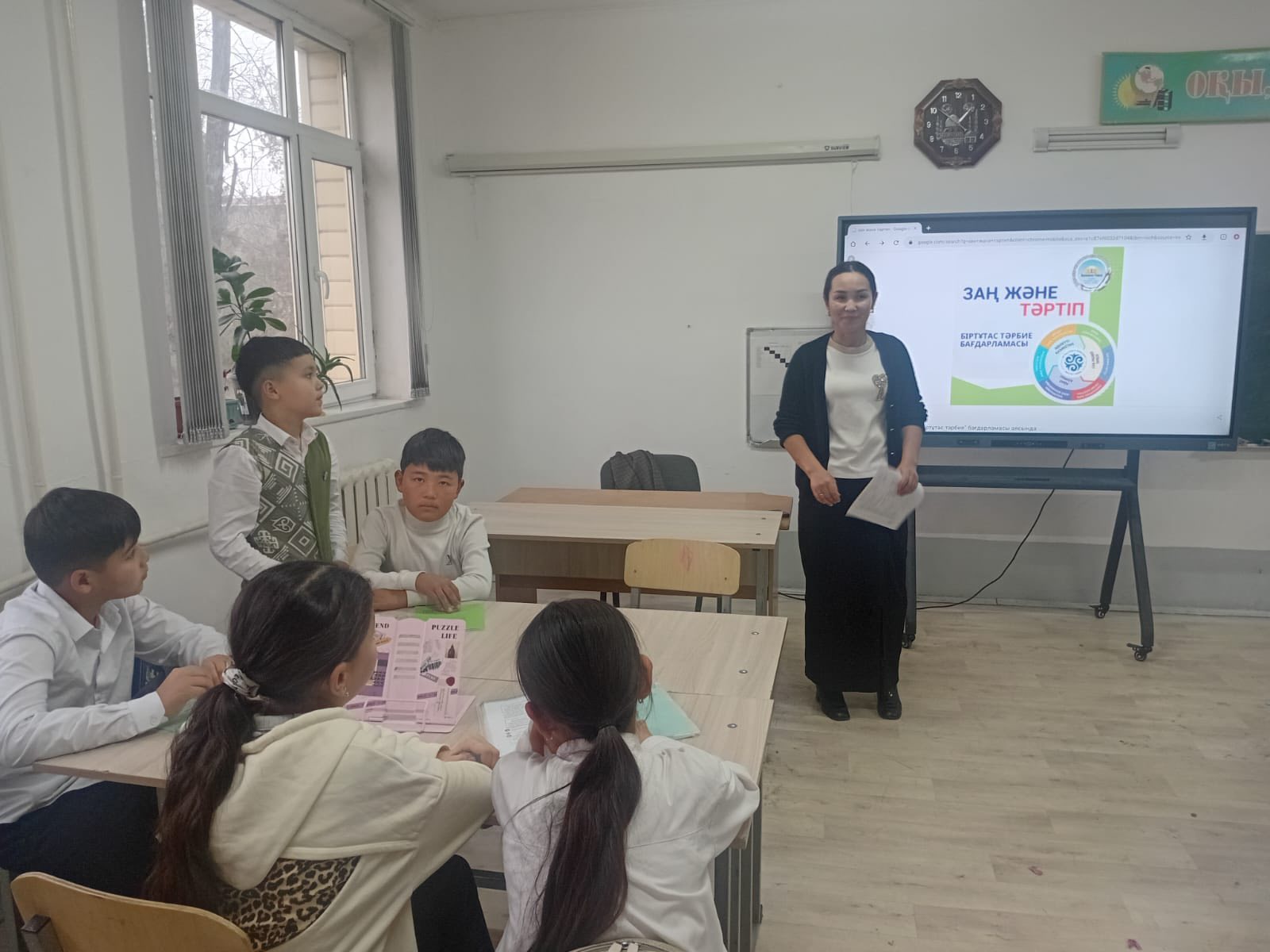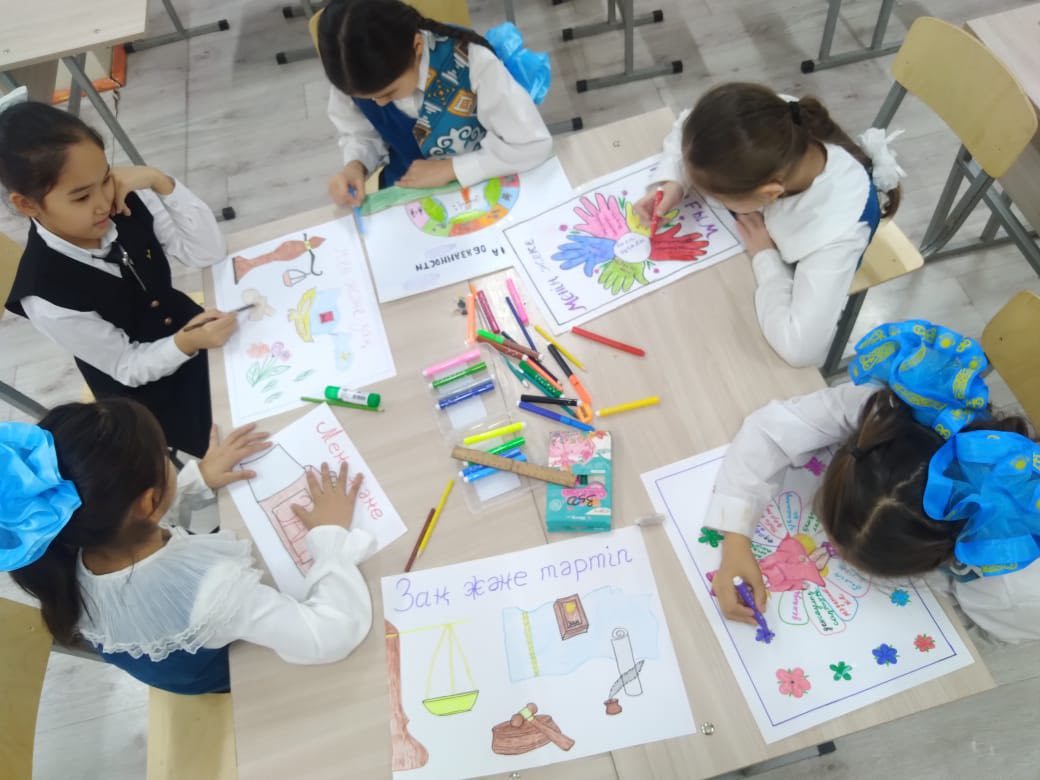 Түркістан облысы Шардара қаласы аудандық білім бөліміне қарасты Б. Соқпақбаев атындағы жалпы білім беретін мектебінде кәмелетке толмаған жасөспірімдерге "ЗАҢ ЖӘНЕ ТӘРТІП" қағидаты оқушыларға құқықтық мәдениет құндылықтарын түсіндіру жұмыстары жүргізілді. Үйірме жетекшілері сынып сағаты барысында "Заң және тәртіп" аясында оқушыларға кеңінен түсіндірді. Сурет көрмесінде оқушылар өз ойларын суретпен жеткізді. МАҚСАТЫМЫЗ: Оқушыларға құқықтық мәдениетті қалыптастыру, заңды құрметтеу, бейнелеу өнері арқылы өз ойларын еркін жеткізу