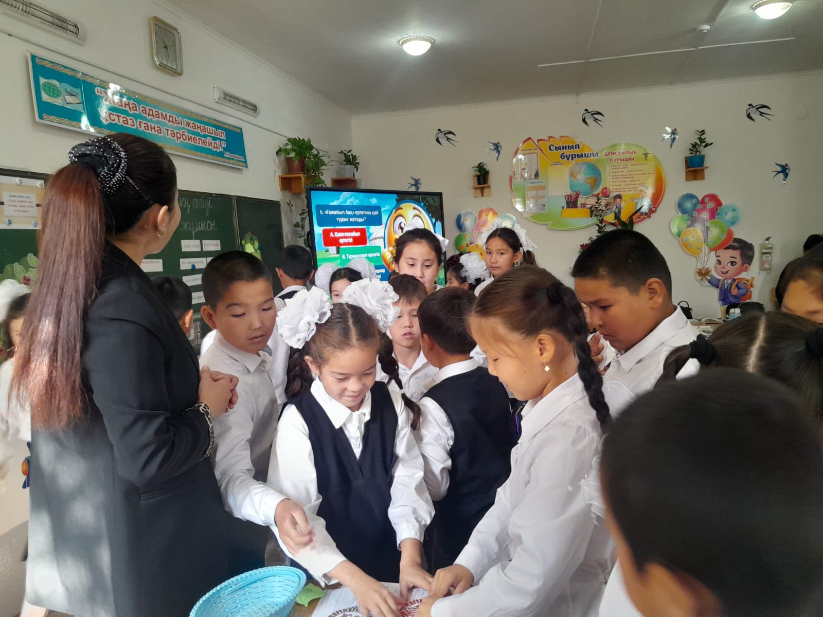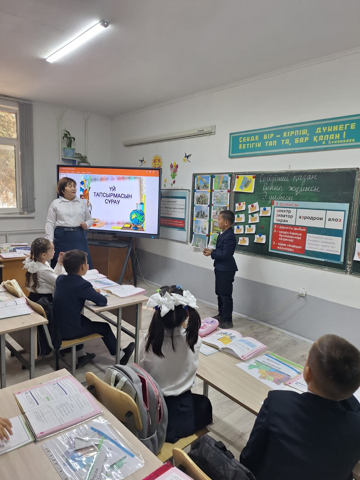 Түркістан облысы, Шардара ауданы, Шардара қаласына қарасты Б.Соқпақбаев атындағы жалпы білім беретін мектебінде 08.10.2025 ж күні бастауыш сынып бірлестігінің " Жасампаз ұрпақ-жарқын болашақ" атты апталығының жоспарына сәйкес 3"Ә" сынып жетекшісі А.Шайманова қазақ тілі пәнінен" Жақсы мен жаманды зерттеймін.Э дыбысы 16-19 жаттығулар"тақырыбында ашық сабақ өтті.Сабақта К4 және STEAM модулін басшылыққа ала отырып, пәнаралық байланыс,топтық ,жұптық жұмыстарда тиімді әдістерді шебер қолдана білді.Сабақ өте жақсы дәрежеде өтті деп бағаланды.Одан әрі қарай 4 "А" сынып жетекшісі Г.Жуманазарова әдебиеттік оқу пәнінен